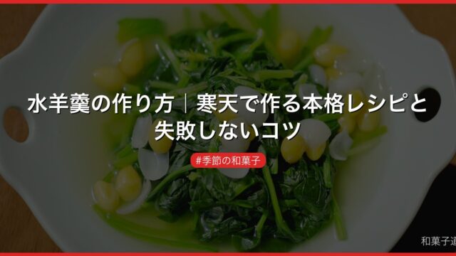 季節の和菓子 水羊羹の作り方|寒天で作る本格レシピと失敗しないコツ 寒天で作る本格水羊羹のレシピを初心者向けに解説。粉寒天・糸寒天・棒寒天の使い分けから、分離しないコツ、アレンジまで網羅。 2026.04.15 季節の和菓子